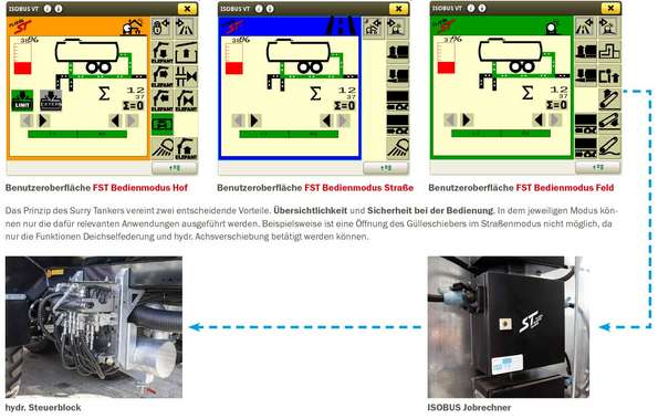 Entwickelt im eigenen Haus, vereint der FST Übersichtlichkeit, Flexibilität und Bedienkomfort auf hohem Niveau. Der Anwender erhält ein durchdachtes System, das sowohl im Straßenverkehr als auch auf dem Feld überzeugt. Besonders in Kombination mit den Ausbringgeräten von Fliegl wird die Steuerung zum zentralen Bedienelement für die gesamte Güllelogistik.