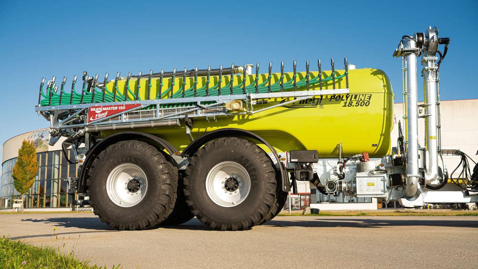 Das PFW BIG FOOT POLY Line 18.500 lässt sich optimal mit der bewährten Ausbringtechnik von Fliegl, wie dem SKATEMASTER, kombinieren. Darüber hinaus kann das Fass mit einer Vierpunkthydraulik ausgestattet werden, um zusätzliche Anbaugeräte, wie etwa eine Güllescheibenegge, flexibel und sicher anzukoppeln. So ermöglicht das System eine präzise, effiziente und bodenschonende Ausbringung unter allen Einsatzbedingungen.