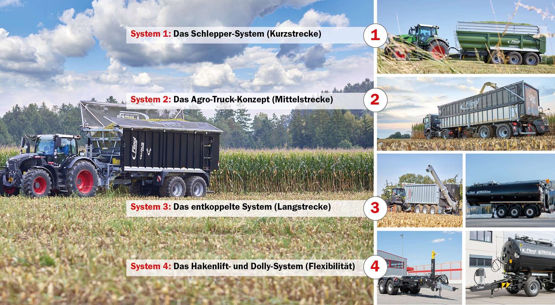 Fliegl unterteilt die moderne Agrarlogistik in vier bewährte Konzepte: