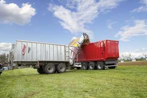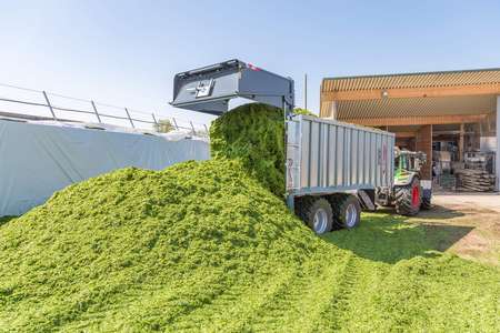 It is not just the stability of the push-off trailers that proves advantageous during unloading. While conventional tippers struggle in low buildings, the push-off trailer can unload without altering its overall height. The possibilities offered by push-off technology are virtually unlimited. The concept is suitable for a vast range of applications – be it as a trailer towed by a tractor, as a body on a heavy goods vehicle or in stationary use for filling biogas plants. Equipping the vehicles with suitable attachments and electronic control systems makes them an interesting and versatile option for customers in the most diverse sectors.