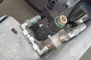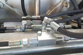 As standard, the GARANT is operated by two tractor control units. A tractor control unit is responsible for the folding via the pressure sequence valve (lifting, unfolding, lowering). The second control unit supplies the oil motors of the screw distributor, while a time relay controls the direction of rotation of the screw.