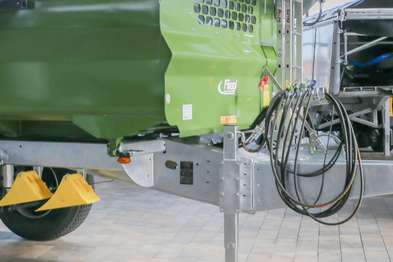 For extreme applications, Fliegl offers the heavy-duty TMK. With a bridge constructed from 400 to 450 HB steel, this dumper is not only strong but also wear-free. The sturdy chassis frame and the low bridge height are also ideal for transporting heavy cargo.