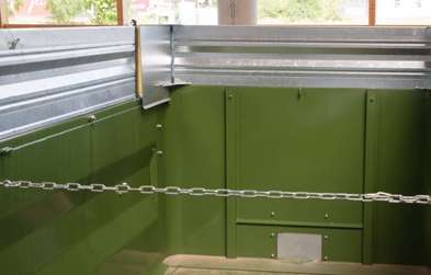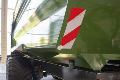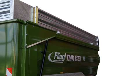 A 500 mm lateral folding attachment can be ordered for the Fliegl dumpers. It increases the capacity of the body when erected and facilitates the loading process when folded down. In the latter case, it is fixed to the outside of the body so that it does not block the opening of the hydraulic rear panel. Other options include a folding front inspection grille, which is particularly useful during chopping, when the harvested crops are thrown from the front over the tractor and into the tipper trailer.