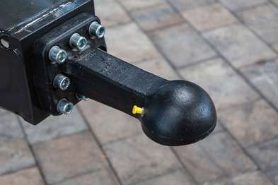 Hydraulically sprung draw gear, swivelling for bottom attachment, easily adjustable coupling height to suit different requirements, supporting stand