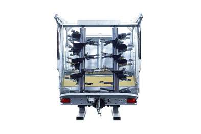 La distance de projection du Profi V2 varie entre 18 et 27 mètres avec le coulisseau de stockage entièrement galvanisé équipé de série et la paroi latérale rabattable mécaniquement.