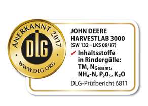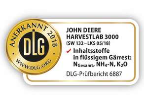 A John Deere Harvestlab 3000 elismert tápanyagdokumentáció (az adott országtól függően)