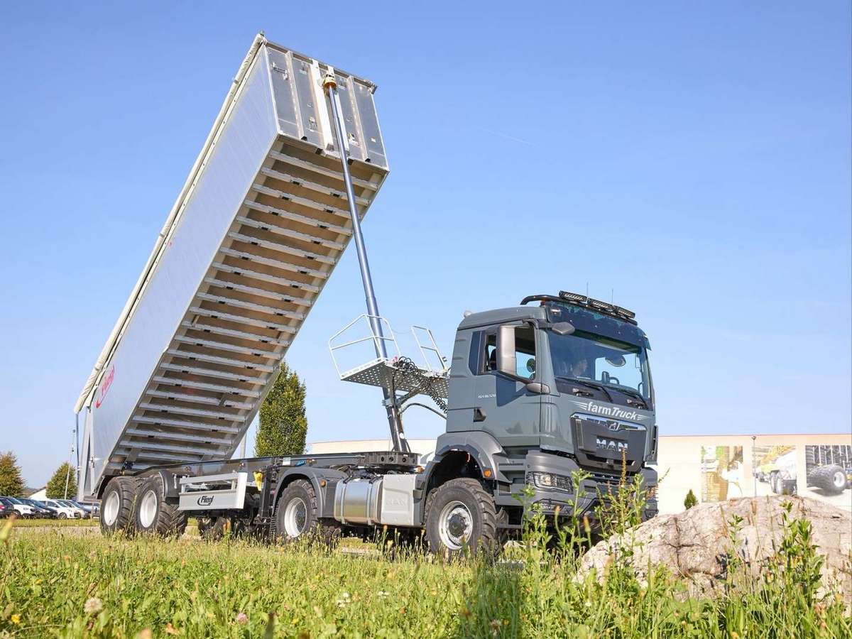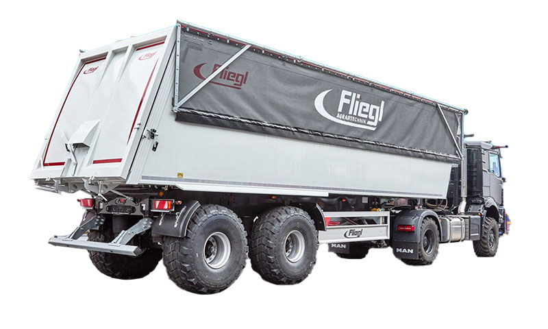 Da die landwirtschaftlichen Flächen immer größer und die zu fahrenden Strecken immer länger werden, benötigt die Landwirtschaft langfristig Lösungen für diesen Strukturwandel. Der Einsatz von LKW in der Landwirtschaft spielt daher eine entscheidende Rolle, um große Mengen landwirtschaftlicher Güter schnell und ressourcenschonend zu transportieren. Fliegl Agrartechnik erweitert daher sein Angebot an Aufliegern um einen Sattelkipper.