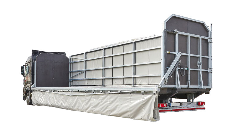 farmTruck mit Abschiebesystem: 22 Sattelauflieger-Varianten, bis zu 70 cbm Nutzlast, LoF-Zulassung möglich, 60 bis 100 km/h Ausführung