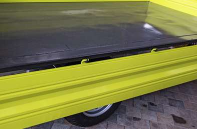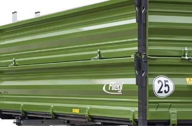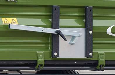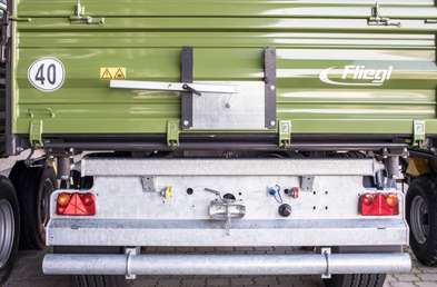 - Благодаря разработанной Fliegl запорной системе задняя стенка сначала слегка поднимается в вертикальном направлении и только потом открывается.