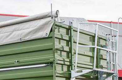 - Задняя стенка с гидравлическим приводом открывается прим. на 90° и обеспечивает загрузку сзади